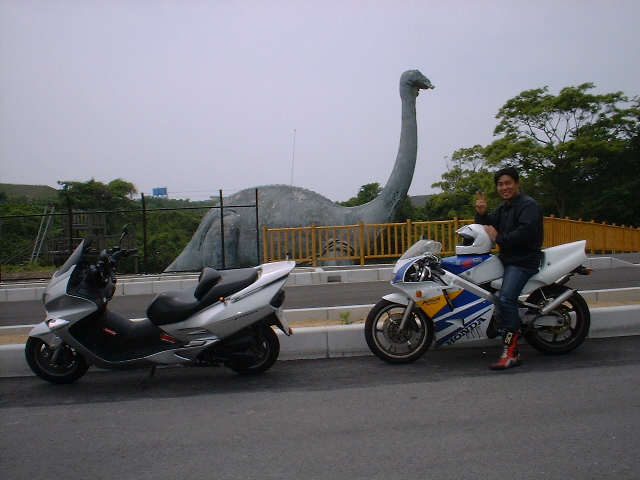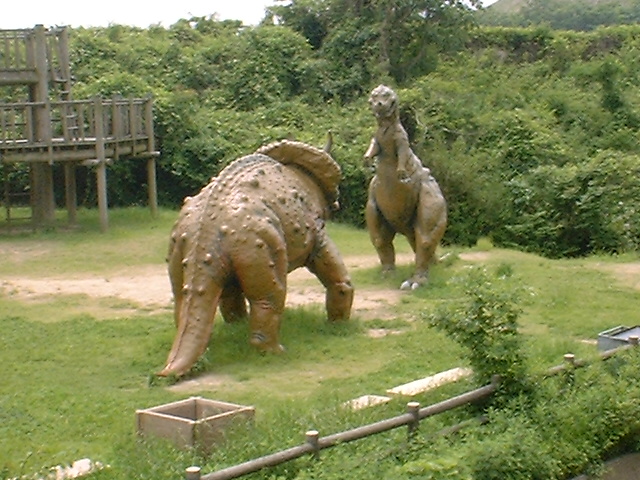 撮影場所の 森林公園の入り口がわからない うろうろしています 仕方がないので もう一度 トンネルまで 戻り トンネルの出口から 一つ目の 左折できる 所を 左に曲がることにしました ライダーと 遭遇しないので 不安にかられながら どんどん 進むと ありました 目印の 恐竜公園? まだまだ 奥に 進みます!